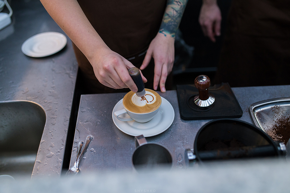 Эспрессо, который готовят наши ребята, уже известен огромному числу гостей разных мероприятий как глоток живительной влаги, способной вернуть утраченные силы и снабдить энергетическим зарядом на многие часы вперед. Что касается молочных напитков, то для Вадима и Сергея это безграничное поле для создания не только вкусового, но и эстетического удовольствия от кофе.