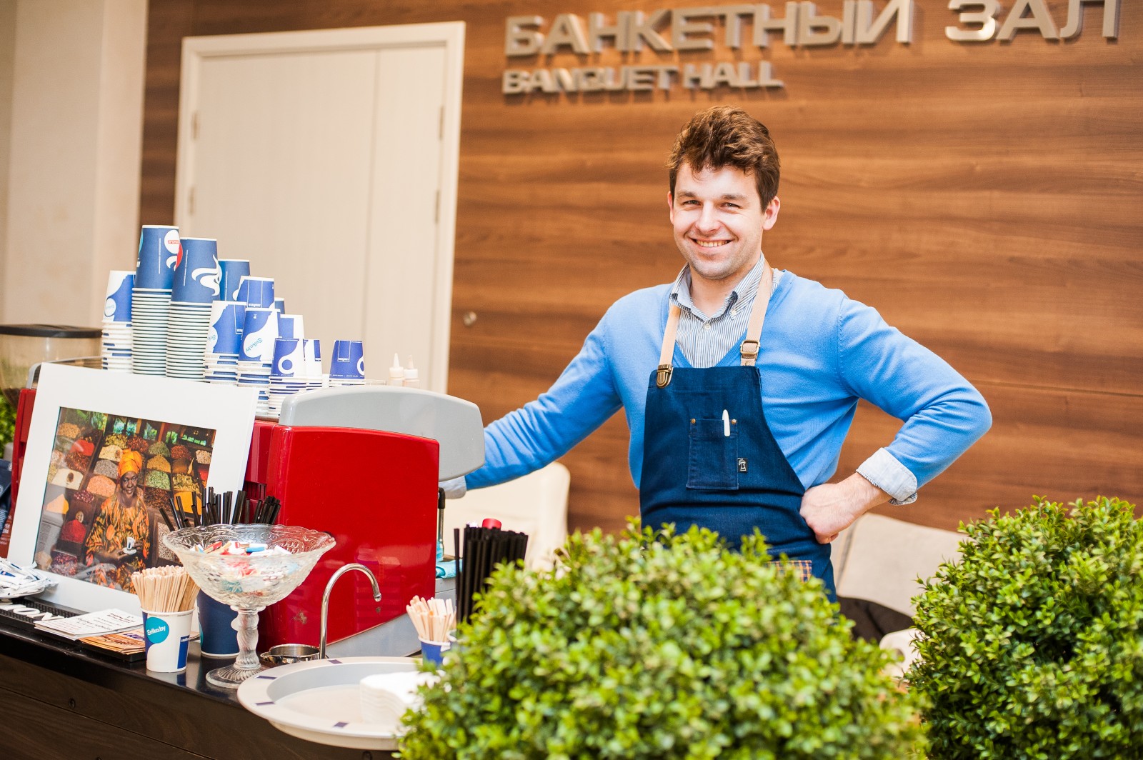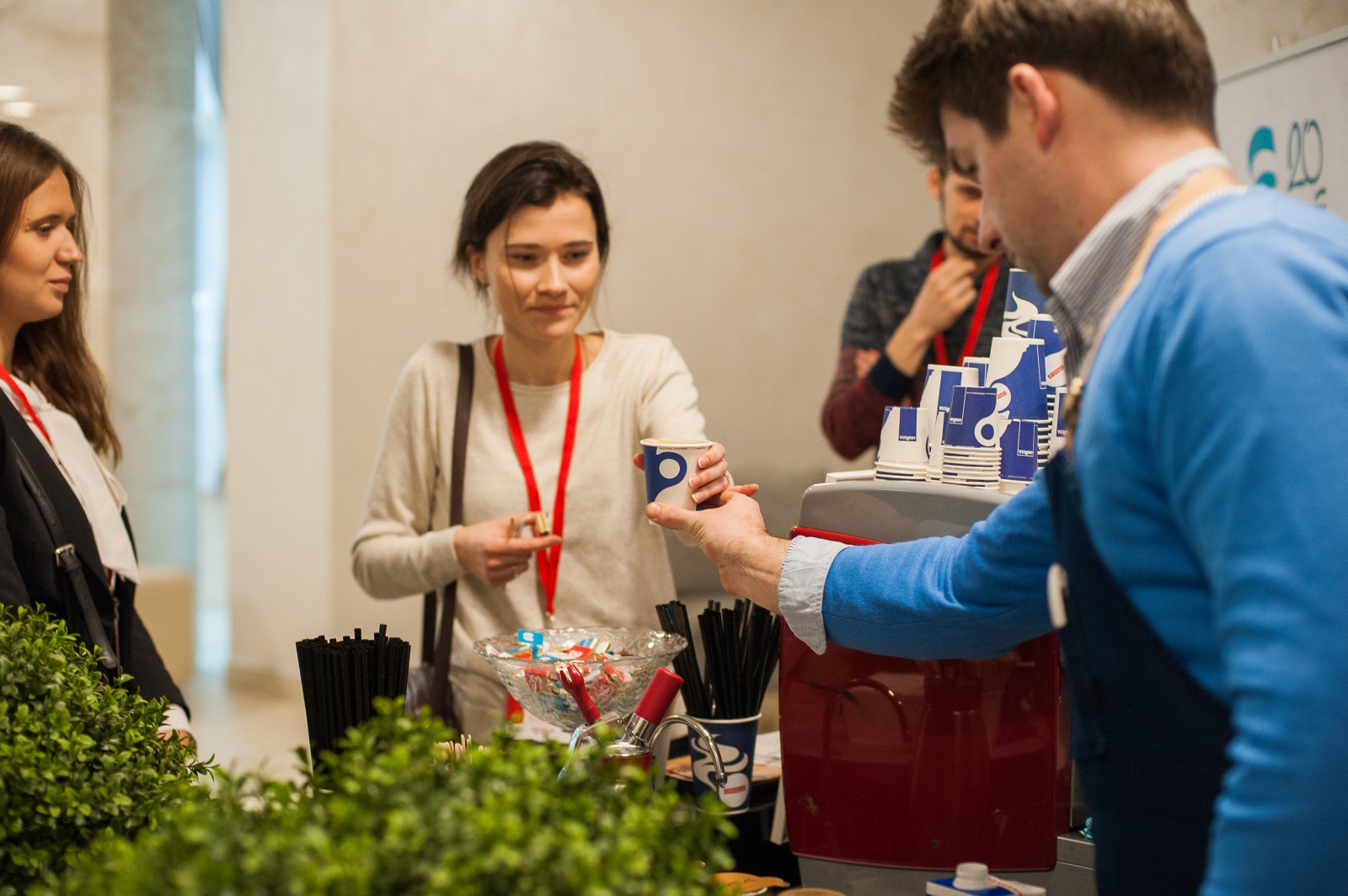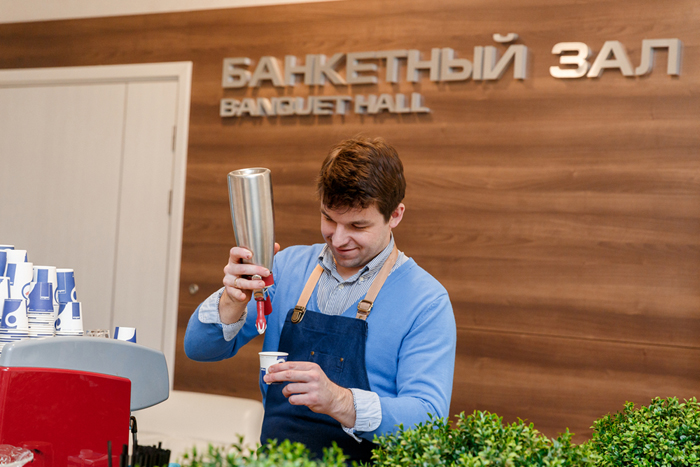 Кофейное сопровождение было организовано составом кофе-тренеров из Тренинг Центра Lavazza компании Кофе Сервис. Его руководитель, Вадим Манкевич лично занимался приготовлением кофейных напитков для участников конференции.