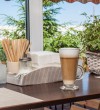 На летней террасе вы можете отлично провести время в кругу друзей за чашечкой превосходного кофе. Если вам станет прохладно – вас ожидает теплый и мягкий плед. Так же на территории кафе есть WI-FI и удобный паркинг.