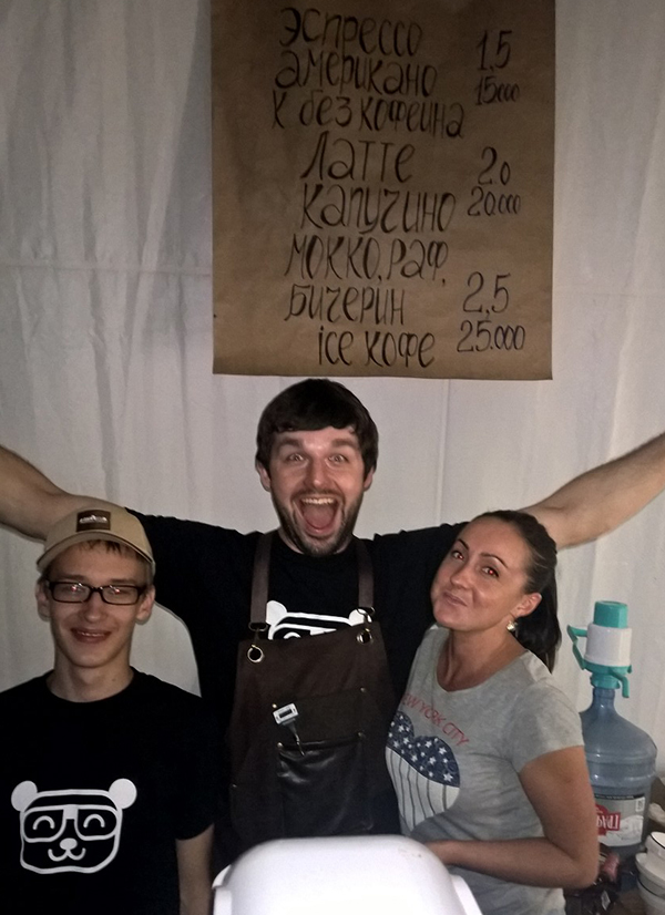 Подключиться пришлось и управляющему компании Кофе Сервис, так как очередь в 25-30 человек стояла часами. Он неустанно поддерживал всех морально и всегда помогал найти время на отдых и перекус.