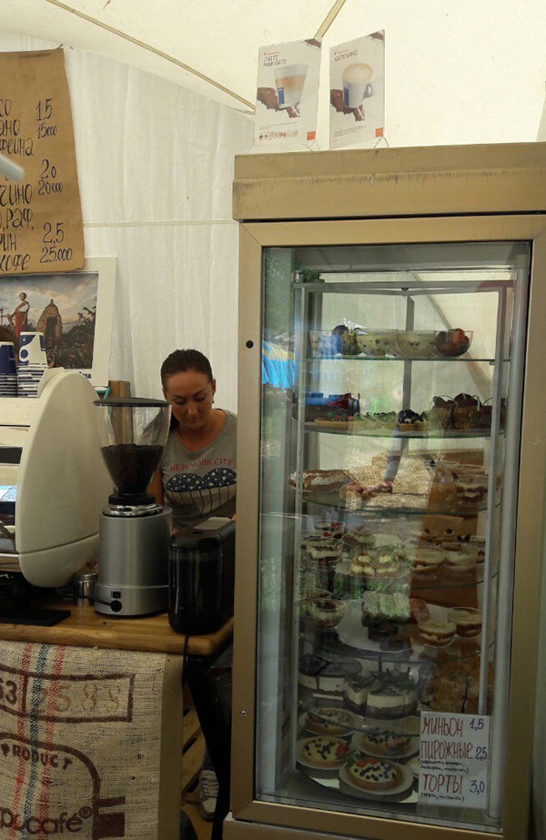 Десерты от партнера Lavazza Club кондитерской Valenka определенно заслуживают внимания – разнообразные пирожные, эклеры и торты моментально съедались посетителями шатра. И снова появлялись на витрине, как по волшебству.