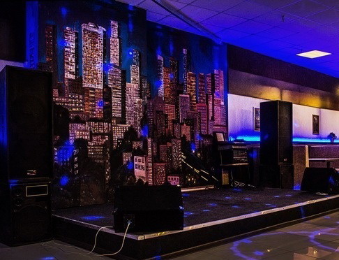 В «Night city» воплощен дизайнерский проект. Задумка заключается в том, чтобы на одном пространстве встретились элементы «старого» и «нового» года, гармонично дополняя друг друга. Это подчеркивают стены, основа — красный кирпич «под старину». В некоторых зонах — роспись стен в виде небоскребов.