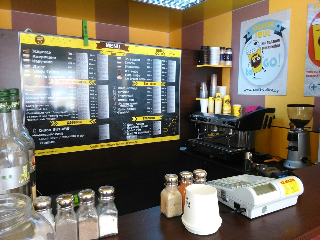 На данный момент SmileCoffee развивается в двух форматах. Это мини тайм-кофейня и кофе-поинт, которые вот уже в течение месяца радуют жителей Витебска. Ни один гость не уйдет от нас без улыбки.